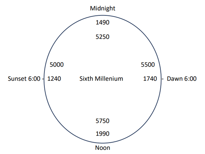 When we look at the events of our time alongside the words of the Prophets, it is very important to get an idea of where we are on the Cosmic Clock. The Vilna Gaon, among other sages, taught that the millennia of history correspond to the days of Creation. Understanding time in this way, we see that we are in the “afternoon of the sixth day” going up to Shabbat. Just as Hashem rested on the Seventh Day, the Seventh Millenium is the time of rest. We are currently in the Hebrew year 5784 (2023-2024), which means we are 216 years from the beginning of the Seventh Millenium—the Hebrew year 6000 (2239-2240). There are several highly significant things about this timing.